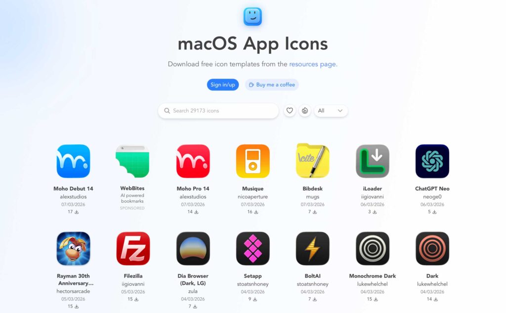 Parmi les sources les plus intéressantes à avoir dans vos signets, macOSicons est certainement la plus fournie. Créé par Elias Ruiz, cette base de données impressionnante est principalement constituée de créations de graphistes.