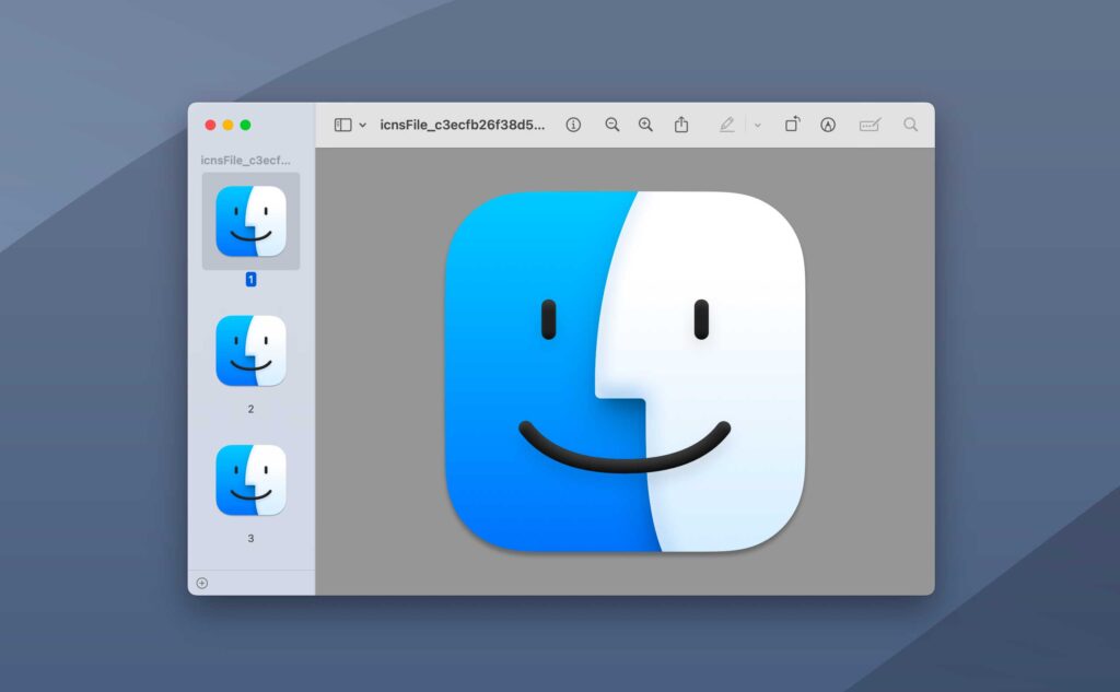 Le fichier téléchargé n’est pas un format PNG, mais ICNS. C’est le format standard des icônes sur Mac. Nous reviendrons sur celui-ci dans un prochain article. Celui-ci s’ouvre dans Aperçu et présente différentes tailles de l’icônes.