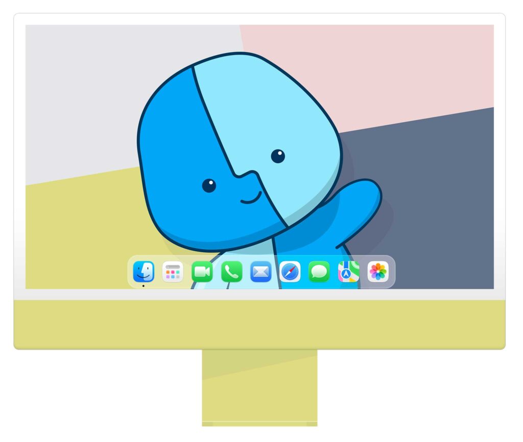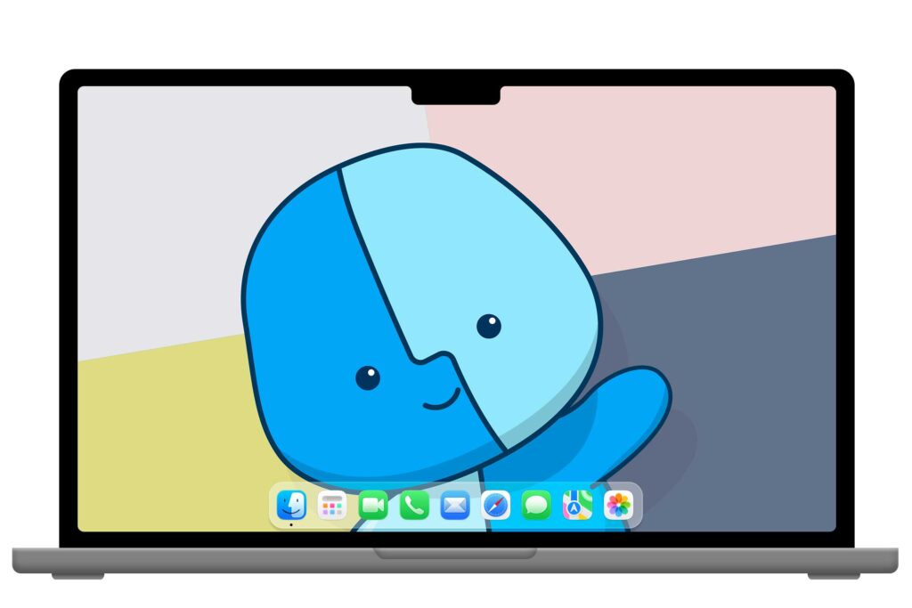 J’ai tout de suite adoré la bouille de ce petit personnage. Il ne restait plus qu’à l’intégrer dans un fond d’écran pour lui rendre hommage. Comme Little Finder Guy (c’est son nom) est sensé accompagné le MacBook Neo, il était impératif d’intégrer les quatre couleurs de cet ordinateur.