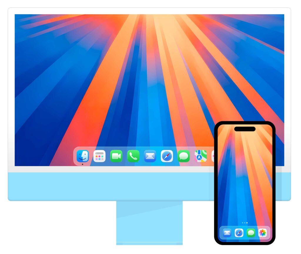 J’ai été, et je suis toujours, un grand amateur du fond d’écran livré avec macOS Sequoia. La version claire avec son bleu et ses reflets orange est tout à fait indiquée pour les travaux du matin. Quand la journée passe, ce fond d’écran varie au niveau des couleurs afin de tirer l’orange vers une couleur émeraude claire du plus bel effet.